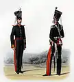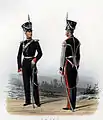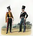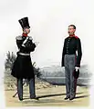 1829—1841. Штаб-офицер в походной форме (сюртук) и рядовой (лейбик).
