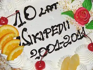 Торт, украшенный золотистыми (применена пищевая добавка (краситель) Е175 — золотая пудра, либо сусальное золото) драже (правый верхний угол)
