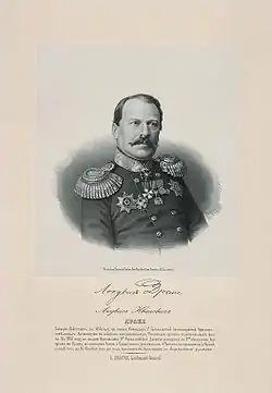 ![]() генерал-лейтенант Л. И. Драке. Литография по рисунку П. Ф. Бореля | |