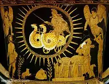 Согласно мифам, колесница бога солнца Гелиоса запряжена «крылатыми драконами» (затем он отдал её своей внучке Медее)[6].