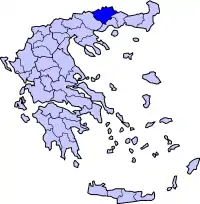 Граничит на севере с Болгарией, на востоке - с номом Ксанти, на юге - с номом Кавала, на западе - с номом Сере. Имеет на своей территории Родопские горы.