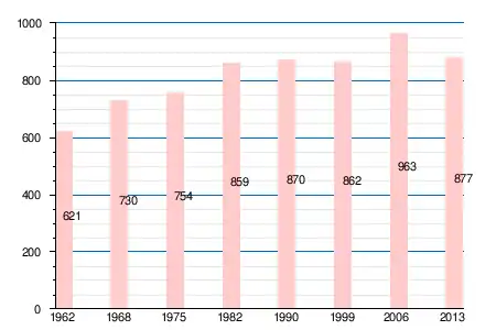 | 621 | 730 | 754 | 859 | 870 | 862 | 963 | 955 | 962 | 919 | 877 |