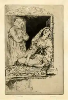 Современное значение пришло с произведением Р. Киплинга «В городской стене» (англ. On the City Wall, сборник рассказов «Чёрное и белое», 1889 год), где появляется куртизанка Лалун (англ. Lalun, «Лалан» в переводе М. Клягиной-Кондратьевой[4]). Эпитет произведения взят из Книги Иисуса Навина (Ветхий Завет, Нав. 2:15), описывающей блудницу Раав, которая помогла Навину захватить Иерихон, укрыв его шпионов. Первая же фраза характеризует Лалун как «представительницу самой древней в мире профессии», вторая фраза поясняет, что прародительницей Лалун была Лилит[5]. Нигде более в рассказе род занятий Лалун не поясняется, ведь каждый и так это знает[6].