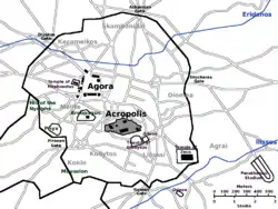 - на востоке: ворота Диохара вела к Ликею. Диомейские ворота получила такое название, поскольку вели к дему Диомею, а также холму Киносаргу.