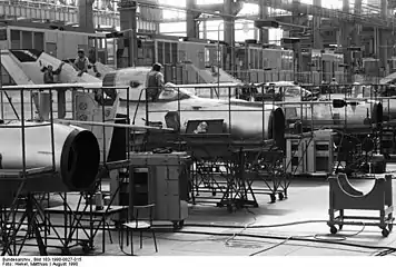 Авиастроительный завод в столице земли Саксония, городе Дрездене был построен в 1935 году, когда нацистская Германия восстанавливал и развивал военное самолётостроение, в том числе для пополнения своих вновь образованных военно-воздушных сил — люфтваффе. Для этого также был построен военный аэродром, ныне международный аэропорт Дрезден. В 1940-е годы на заводе разрабатывали перспективный реактивный бомбардировщик Junkers Ju 287, который совершил свой первый полёт в августе 1944 года. Данный бомбардировщик отличался новаторской конструкцией, в частностью крылом обратной стреловидностью. Однако закончить разработку и запустить в производство Ju 287, немцы не успели. 13 февраля 1945 года Дрезден подвергся мощнейшей ковровой бомбардировке военно-воздушными силами США и Великобритании и был, фактически, стёрт с лица земли. Значительно был разрушен и авиазавод.