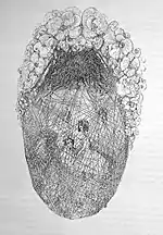 «… образ безысходного садового пространства создает голуборозовец В. П. Дриттенпрейс (1907, № 2). Его овальная композиция окружена крупными цветами, населена райскими птицами и изящными женскими фигурами. Все пространство виньетки рассечено косыми линиями, напоминающими дождевые струи. Их испускает похожий на тучу многоногий паук, неопределенность форм которого довершает пикантность образа»[15].