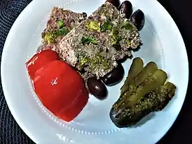 Дроб — блюдо румынской кухни. Представляет собой фарш из субпродуктов ягнёнка, завёрнутый в сальник и жареный как мясной рулет[1].