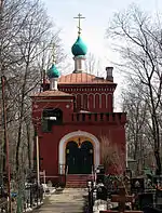 ![]() Вид в направлении Троицкой церкви и ворот кладбища | |