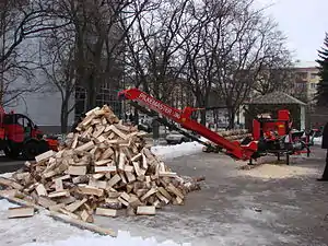 - дровокольный станок — станок, выполняющий и торцовку, и раскол на поленья.