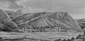 ![]() Афанасий де Палдо, Бешуи 1805 г. Из альбома ко второй части издания П. И. Сумарокова «Досуги крымского судьи или Второе путешествие в Тавриду» | |