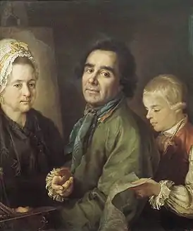 Портрет художника А. П. Антропова с сыном перед портретом жены
