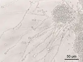 Часто, особенно у аскомицетных дрожжей родов Candida и Pichia, клетки после почкования не расходятся и образуют псевдомицелий, отличающийся от истинного отчётливо видными перетяжками на месте септ и более короткими по сравнению с предшествующими конечными клетками.