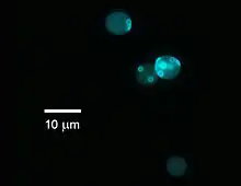 ![]() Клетки дрожжей Saccharomyces cerevisiae под микроскопом | |||||