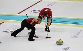 ![]() Пётр Дрон и Виктория Моисеева на Чемпионате мира по кёрлингу среди смешанных пар 2015 | |