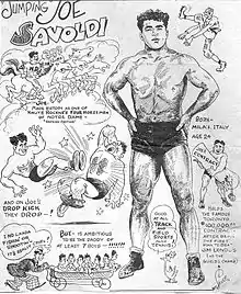 В текущей форме первым дропкик применил именно Джо Саволди[4], хотя похожий приём показывал и Эйб Коулмен по прозвищу «Еврейский Геракл» и «Еврейская пума». Коулмен наносил в падении удар ногой в грудь противника и называл его «Ударом кенгуру»[5]: название он придумал после тура по Австралии в 1930 году[6].