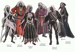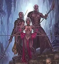 Дроу (англ. drow, самоназвание — «илитиири»; в разных переводах использовались транскрипции «драу» и «дров»)[1] — тёмные эльфы, вымышленная раса в мирах Dungeons & Dragons. Впервые упомянуты в книге правил Первого издания игровой системы Advanced Dungeons & Dragons за авторством Гэри Гайгэкса в 1979 году как разновидность расы эльфы. В конце 1980-х — начале 1990-х доработаны и включены Эдом Гринвудом в новый сеттинг Forgotten Realms («Забытые Королевства»), в рамках которого и получили наибольшую известность (согласно которому и описываются в статье). Эльфы-дроу значительно популяризованы литературой по Forgotten Realms, в частности сериалом Роберта Сальваторе о следопыте Дриззте До’Урдене. Разработчиками вселенной создан язык дроу и словарь с расхожими словами и фразами.