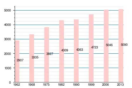| 1962 | 1968 | 1975 | 1982 | 1990 | 1999 | 2006 | 2008 | 2011 | 2012 | 2013 |