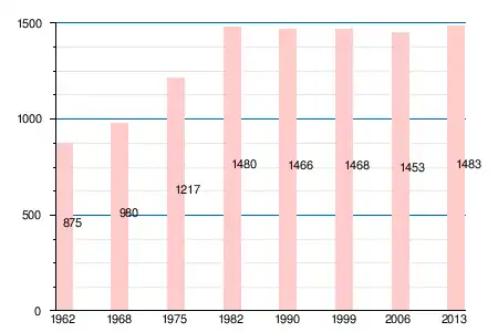 | 875 | 980 | 1217 | 1480 | 1466 | 1468 | 1453 | 1448 | 1458 | 1471 | 1483 |