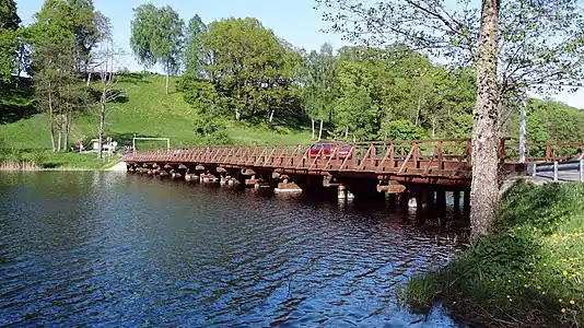 Перед постройкой моста через озеро под опекой графа Тышкявичюса были построены паром и коттедж паромщика. В 1933 году президент республики Сметона не смог переехать в город через озеро, когда прибыл в Дубингяй. По этой причине и по просьбе местных жителей было разрешено построить мост. 3 июня 1934 года в присутствии президента мост был торжественно открыт.