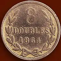 8 дублей | 31,6 мм | 9,6 г | бронза | 1864, 1868, 1874, 1885, 1889, 1893, 1902, 1903, 1910, 1911 | |