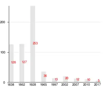 | 1838 | 1862 | 1928 | 1965 | 1997 | 2002 | 2007[18] |