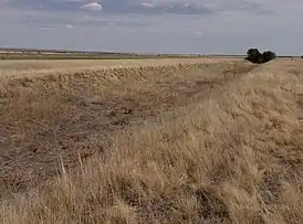 ![]() Ров Дубовско-Качалинской железной дороги вблизи хутора Спартак. Рельсовые пути отсутствуют. Август 2017 года. | |
