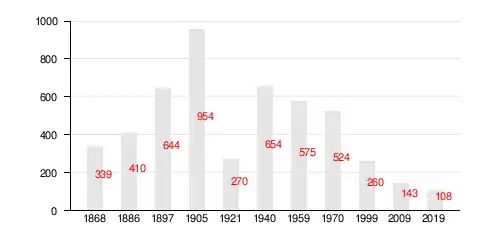 На 1 января 2018 года насчитывалось 133 жителя в 66 домохозяйствах, из них 11 младше трудоспособного возраста, 84 — в трудоспособном возрасте и 38 — старше трудоспособного возраста[5].