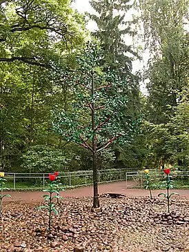 Фонтан был разрушен в годы Великой Отечественной войны. После войны по сохранившимся рисункам и по уцелевшей веточке с листьями (она представлена на выставке в Гротах Большого каскада), под зеленой окраской которых проступила позолота, фонтан-шутиха был воссоздан в 1953 году. Архитектор — Оль А. А. Руководили воссозданием отец и сын Лаврентьевы[1].