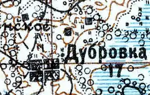 ДУБРОВКА — деревня владельческая при озере Камошье, число дворов — 4, число жителей: 19 м. п., 17 ж. п.[4] (1862 год)