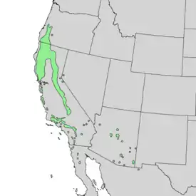 | Ареал Quercus chrysolepis | ||||||||||||||