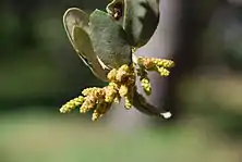 Слева направо: кора, листья, тычиночные серёжки, пестичные цветки, жёлуди | ||||||||||