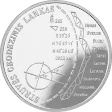 - 07 мая 2016 года на Банкнотно-монетном дворе Украины была выпущена памятная монета «Геодезическая дуга Струве» (к 200-летию начала осуществления астрономо-геодезических работ) из нейзильбера номиналом 5 гривен. тираж монеты составил 30000 шт.