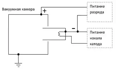 Испущенные накаленным катодом электроны вылетают из тонкого катодного слоя с почти одинаковыми скоростями и ионизуют газ, образуя плазму, которая заполняет остальной объем. Ионизации осуществляется прямыми и ступенчатыми ударами. Плазма взаимодействует с катодным слоем таким образом, что в слой из плазмы поступает столько ионов, сколько необходимо для поддержания стационарного режима разряда.