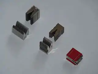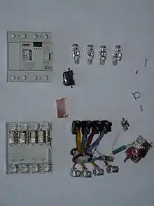 Дугогасительная решётка выключателей представляет собой набор металлических (обычно стальных) штампованных прямоугольных пластин с V-образным вырезом, гальванически покрытых медью или хромом для улучшения электрической проводимости и защиты от коррозии, закреплённых параллельно или веерообразно на некотором расстоянии друг от друга между двумя держателями, изготовленными из диэлектрика (обычно электрокартона) или, в устройствах большой коммутируемой мощности, в держателе из асбоцемента, причём дугогасительные пластины электрически изолированы друг от друга. В дугогасительные камеры мощных коммутационных устройств входят постоянные магниты или электромагниты, отталкивающие шнур плазмы электрической дуги от металлических контактов в дугогасительную камеру (так называемое «магнитное дутьё»).