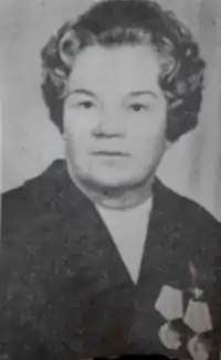 В 1970 году досрочно выполнила личные социалистические обязательства и производственные задания Восьмой пятилетки (1966—1970). Указом Президиума Верховного Совета СССР от 5 апреля 1971 года «за выдающиеся успехи в досрочном выполнении заданий пятилетнего плана и большой творческий вклад в развитие производства тканей, трикотажа, обуви, швейных изделий и другой продукции легкой промышленности» удостоена звания Героя Социалистического Труда с вручением ордена Ленина и золотой медали «Серп и Молот»[1].