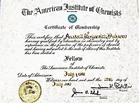 - Почётный член Института химиков США
