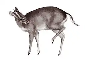 Животное высотой 40 см в холке и весом от 4 до 6 кг. Ведёт ночной образ жизни, скрываясь от хищников в густой траве.