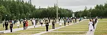 Это — мемориал на территории бывшего пересыльного лагеря для военнопленных «Дулаг-125», который называли «Полоцкой голгофой». В лагере были замучены до смерти, убиты десятки тысяч военнопленных, мирных жителей. Все они, безымянные, захоронены в общих могилах на этом самом поле.