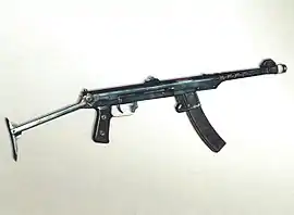 Скошенный передний конец ограждения ствола также работает как компенсатор. Пистолет-пулемёт Шпагина образца 1941 года.