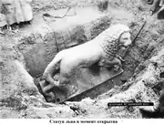 Статуя льва из Львиного кургана Керчи в раскопе, 13 сентября 1894 года