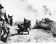 31 марта советские пехотинцы, поддерживаемые румынскими танкистами, встретили немецкий опорный пункт, который защищали взвод «Тигров», взвод тяжёлых противотанковых самоходных установок, а также рота венгерских танков PzKpfw IV. В этом бою союзникам улыбнулась удача: во время налёта немецкой авиации один из сбитых немецких бомбардировщиков упал рядом со стоявшими «Тиграми», повредив два из них. Воспользовавшись замешательством противника, румынские танкисты атаковали, уничтожив два и подбив ещё два венгерских танка. Немцы отступили, взяв поврежденные «Тигры» на буксир.