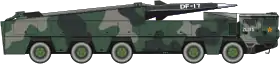 Мобильная двухступенчатая твердотопливная ракета с дальностью 1800—2500 км, специально предназначена для доставки гиперзвукового управляемого боевого блока DF-ZF (ранее WU-14). Аналог ракеты Дунфэн-16. Первый ударный гиперзвуковой комплекс в мире.