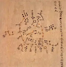 Карта Дуньхуана или Звёздная карта Дуньхуана является одним из первых известных графических изображений звёзд древней китайской астрономии, относящихся к династии Тан (618–907). Перед этой картой большая часть информации о звёздах, упомянутой в исторических китайских текстах, была поставлена под сомнение[2]. Карта обеспечивает графическую проверку наблюдений за звёздами и является частью серии изображений на одной из рукописей Дуньхуана. Астрономия, лежащая в основе карты, объясняется в образовательном ресурсе, размещённом на веб-сайте Международного проекта Дуньхуана, где была проведена большая часть исследований на карте[3]. Звёздная карта Дуньхуана на сегодняшний день является самым старым в мире полным сохранившимся звёздным атласом[4].