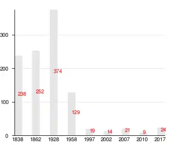 | 1838 | 1862 | 1928 | 1958 | 1997 | 2002 | 2007[19] |