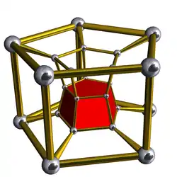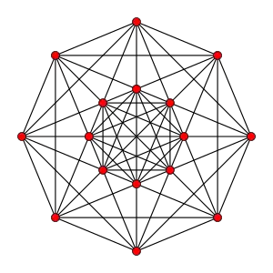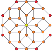 Диаграмма Шлегеля![]() Показана проекция из центра одной 16-угольной призмы и все, кроме одной, противоположные 16-угольные призмы. |
