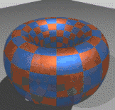 Центрированная относительно ячейки перспективная проекция дуопризмы выглядит как тор с двумя множествами ортогональных ячеек, p-угольных и q-угольных призм.