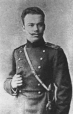 В 1908 году Санкт-Петербургское пехотное юнкерское училище, откуда выпущен был подпоручиком в 177-й пехотный Изборский полк.