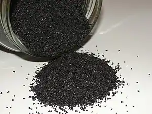 Что касается серы, то для изготовления пороха применяется сера только кристаллической формы с температурой плавления 114,5°С[3][14]. По упомянутым нормативам в ней не должно было содержаться соединений кальция, магния и нерастворимых в воде веществ — песка, металла, дерева и т. п.[11]