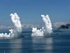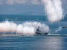 Постановка дымовой завесы ракетными катерами