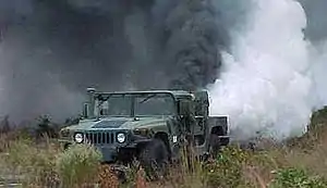 Дымовая завеса в исполнении американских военных, дымогенератор на армейском вездеходе Хамви